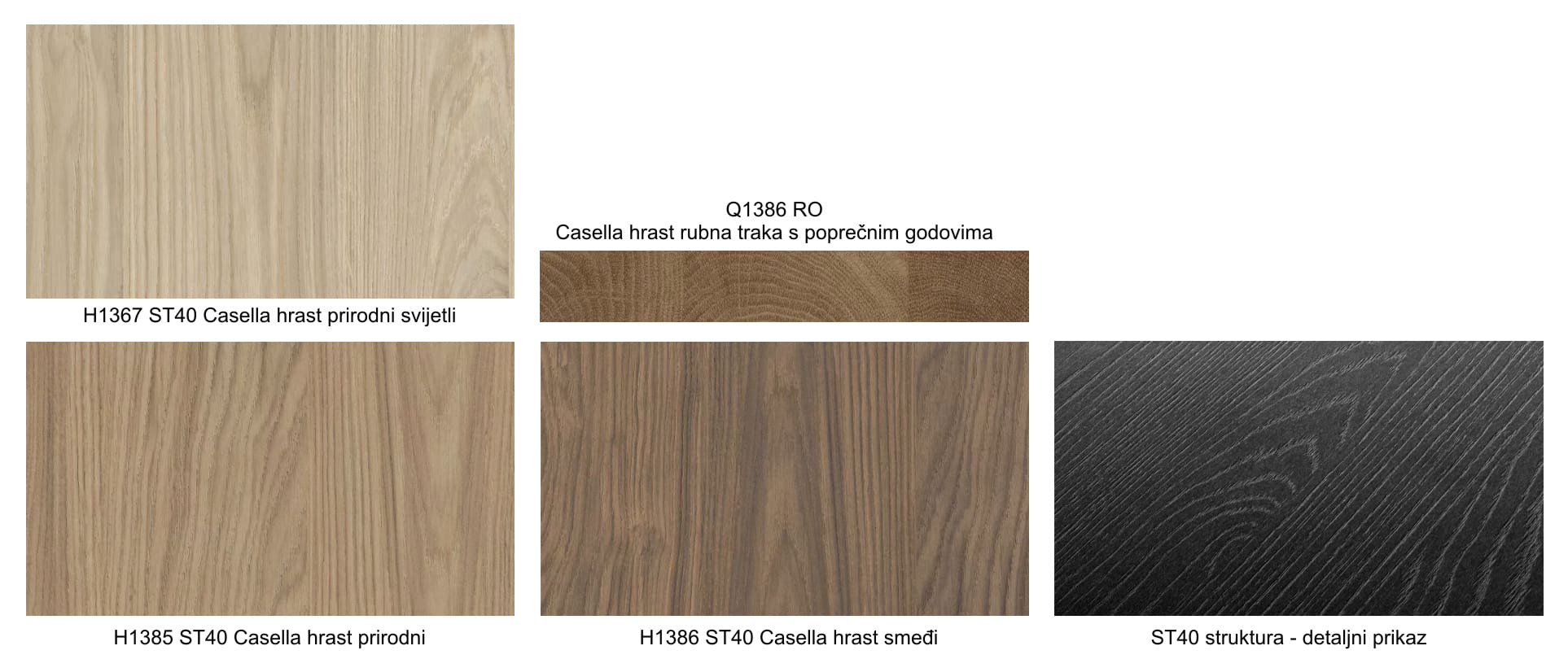 Kolekcija standardnih postforming radnih ploča debljine 38 mm doživjela je temeljito osvježenje s preko 30 novih dekora. Od novih drvnih dekora posebno se ističu H2409 STG8 Cardiff smeđi hrast i već spomenuti H305 ST12 Tonsberg hrast. Kod dekora koji sugeriraju kamene ili keramičke materijale imamo novu ST78 strukturu kao nadogradnju stare ST87 strukture s predstavnicima dva dekora iz Cascia granit porodice i 3 dekora iz Titanite porodice.