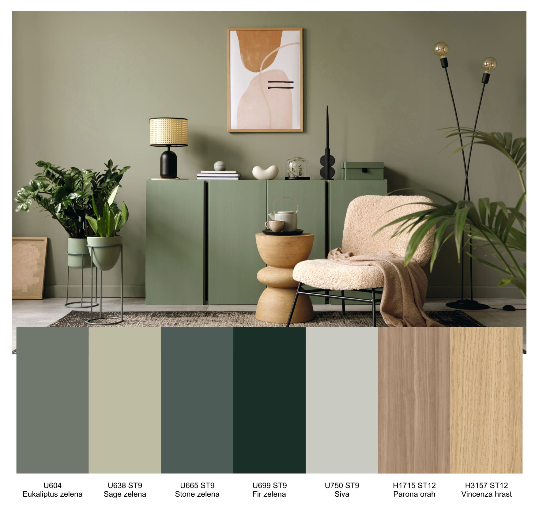 Ne računajući par osnovnih izražajnih boja u ovoj kategoriji dominira spektar prigušenih, odnosno pastelnih boja, kako je kod nas uvriježeni naziv. Najviše novih tonova imamo u skupini zelenih boja koja odaje najupečatljiviji dojam svojom rafiniranošću dobivenom profinjenom variranjem različitih pigmenata. Atraktivnost zelenog kompleta dekora je motivirala Eggerove marketinške i dizajnerske stručnjake da njemu posvete jednu od svojih “Kapsula”